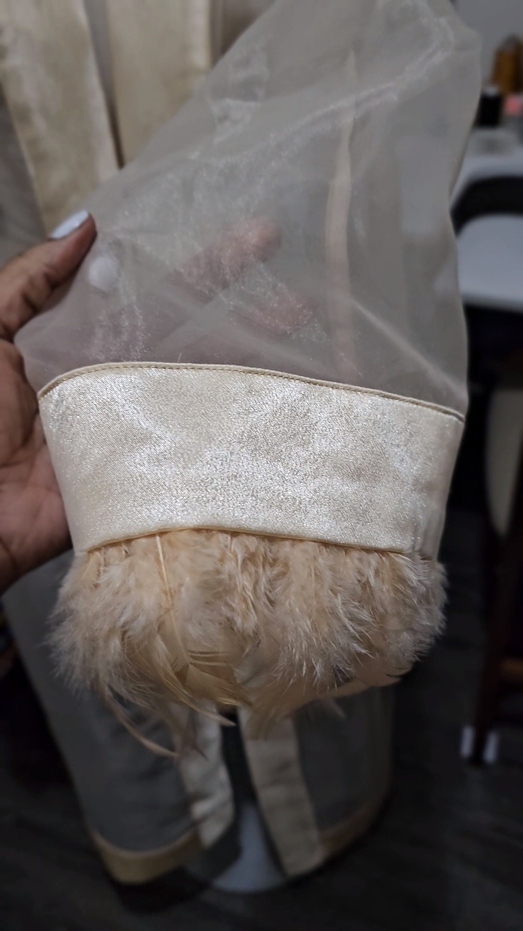 I was on video chat with a friend and we decided to sew together and while I was trying to choose the next project to work on, she suggested I work on the duster and challenged me to document the process on Instagram. I took on her challenge and did just that. In one night, I completed everything but the satin and feather trim detail on both sleeves, all while documenting the process on my Instagram stories. It was late at night and I kept attaching the cuff pieces to the sleeves incorrectly so I put it down for the night to hopefully tackle it the next day. Next day ended up being almost two years later. *Face palm*